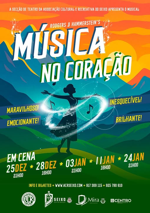 Não perca este extraordinário Musical neste ano que se celebram 60 anos de “Música no Coração”, um clássico que o mundo nunca esqueceu e que o Teatro do Seixo revive.